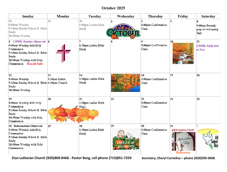 LWML SUNDAY! LWML Sunday will be on Oct. 5th this year. The ladies will be ushering in October.